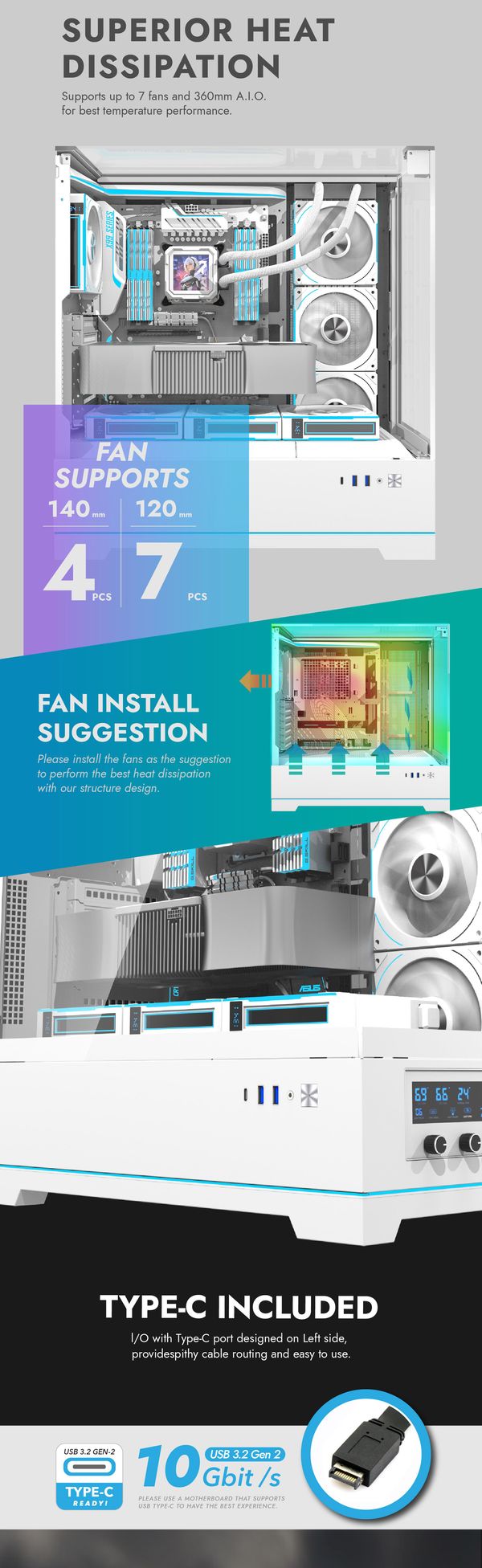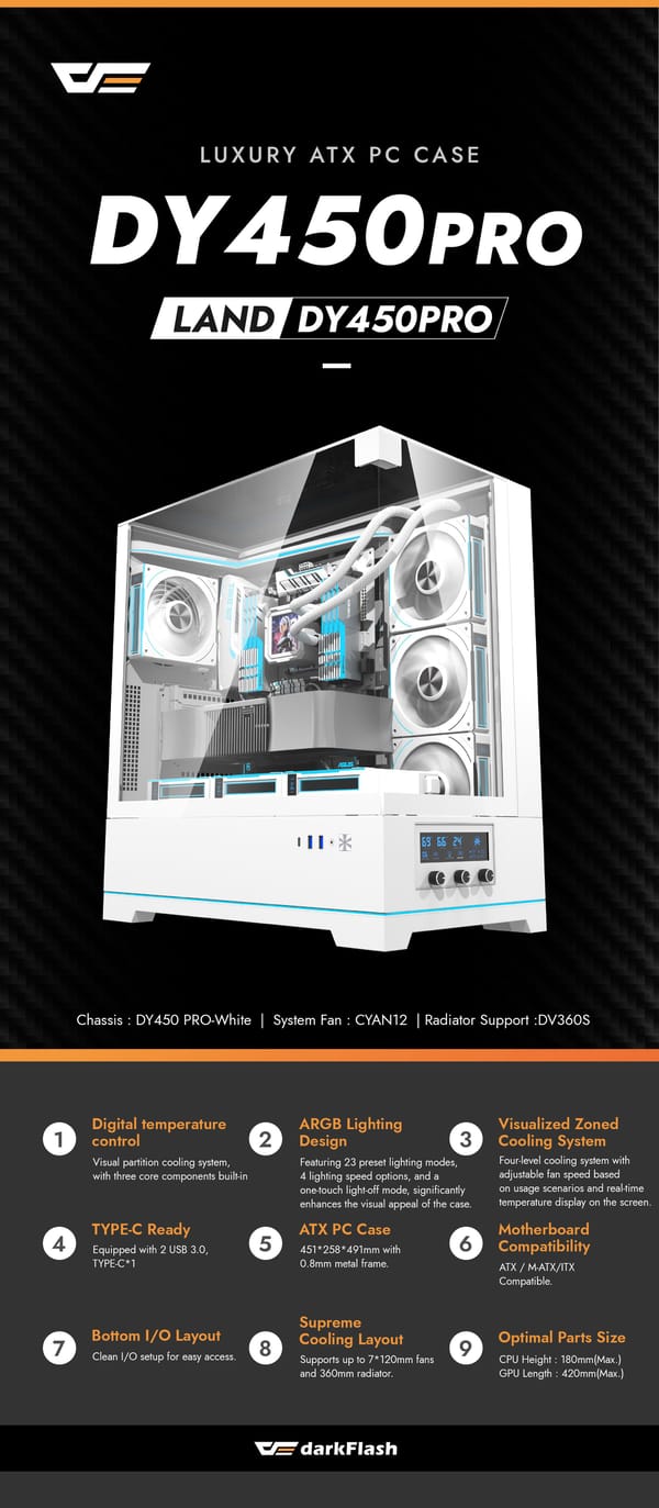 DARKFLASH DY450 WHITE WITH 4*CYAN FANS