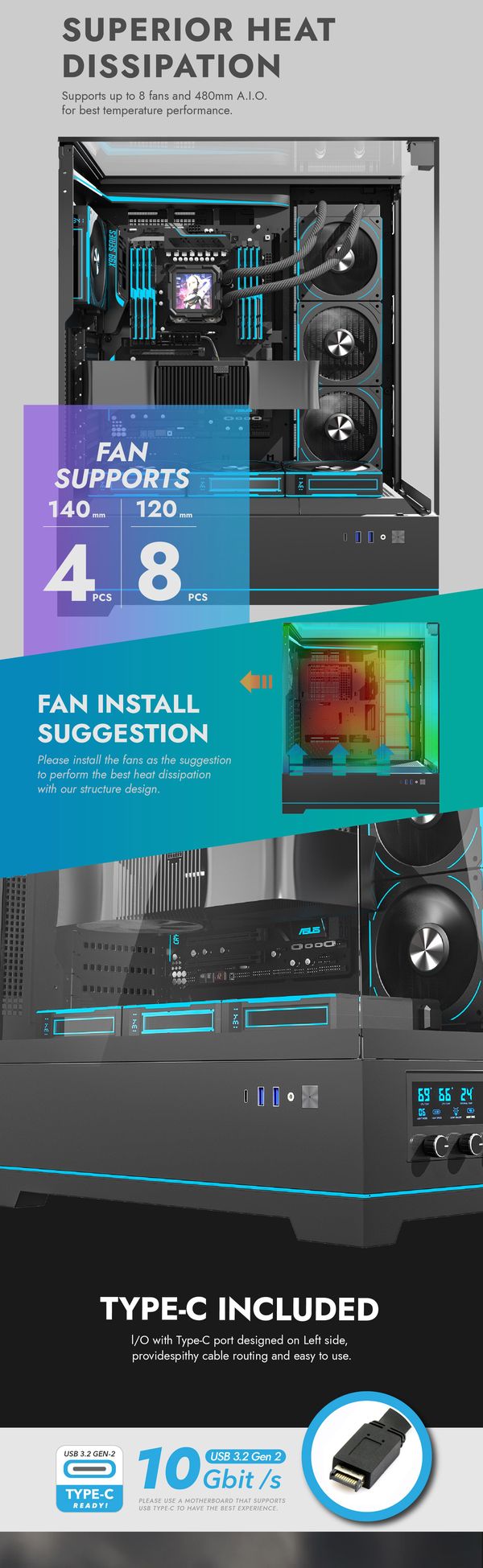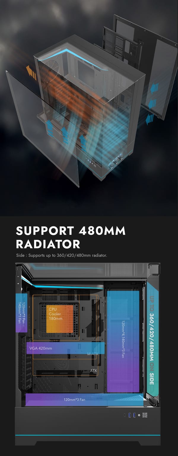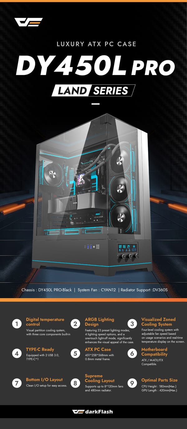 DarkFlash DY450L BLACK WITH 4*CYAN FANS