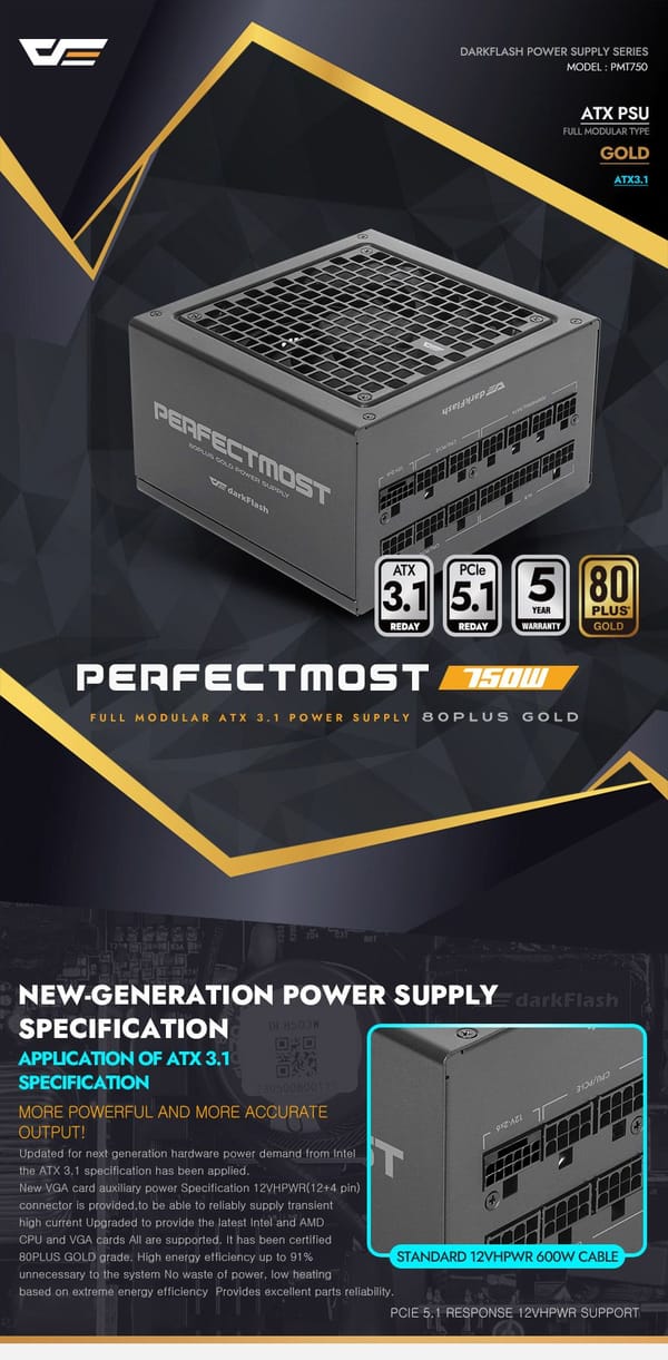 DARKFLASH PMT 750W Gold Full Modular Power Supply