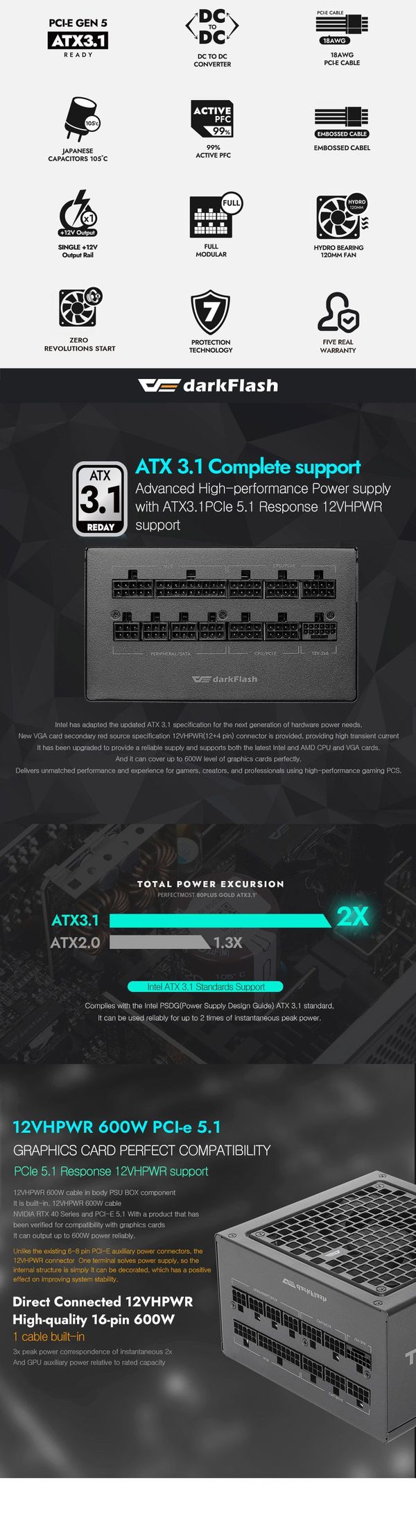 Direct Connected 12VHPWR, High-quality 16-pin 600W