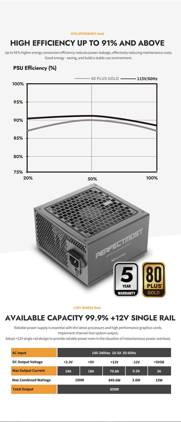 Model Name | PMT850W Full Modular Power Supply |