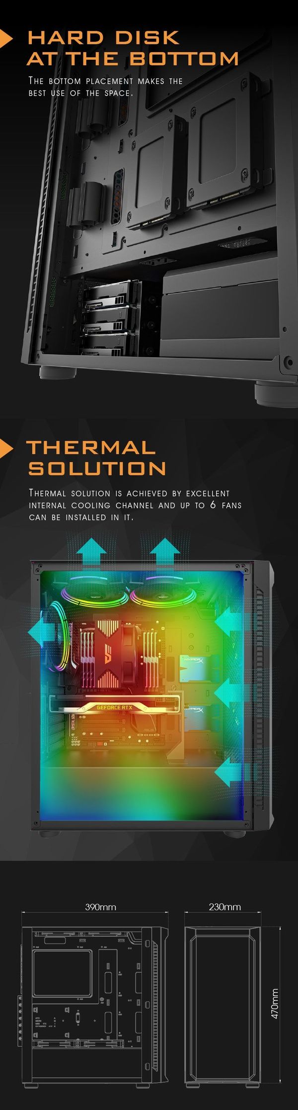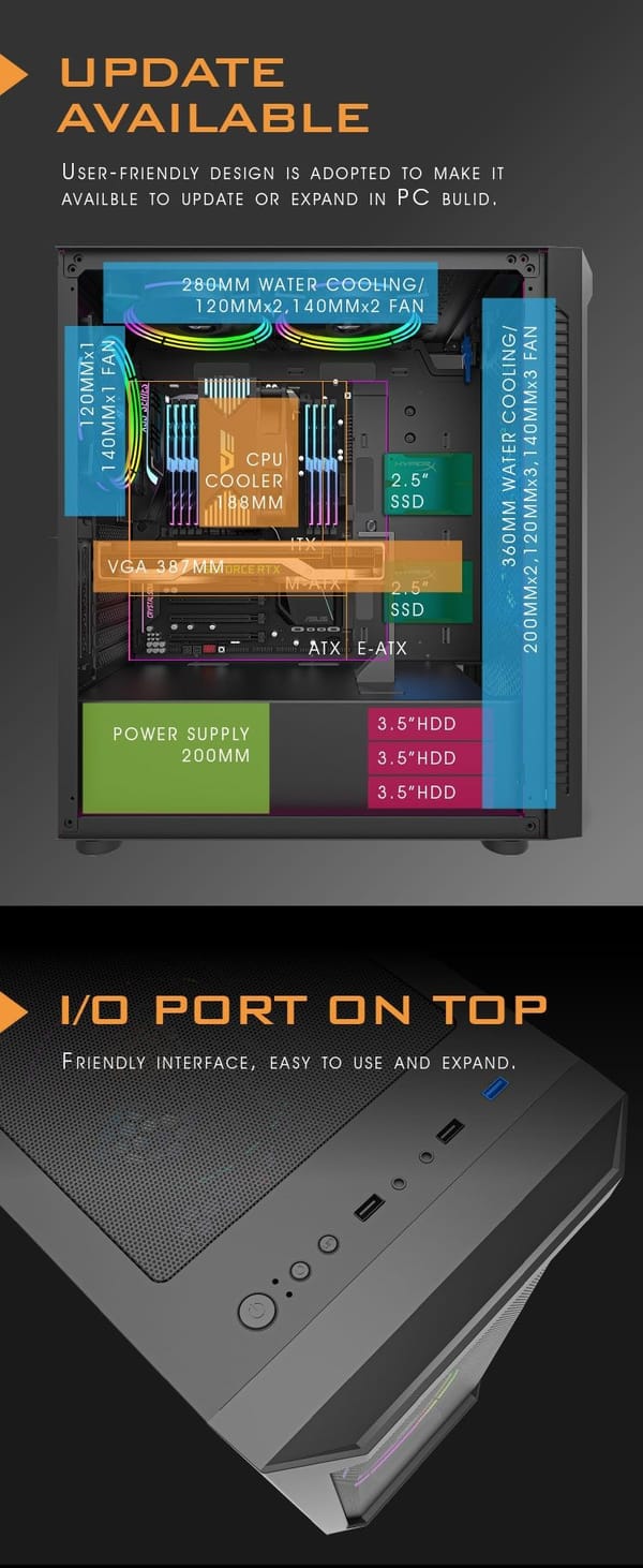 Supports up to 6 140mm cooling fans for better cooling.