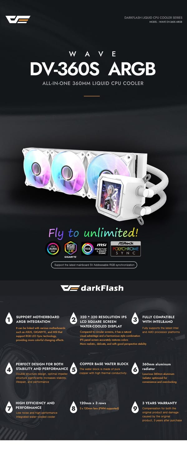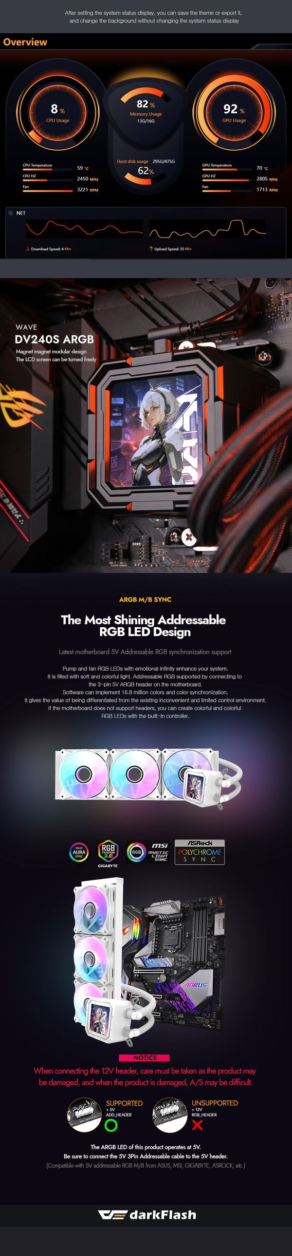 DV360S LIQUID COOLER WITH LCD SCREEN DISPLAY White